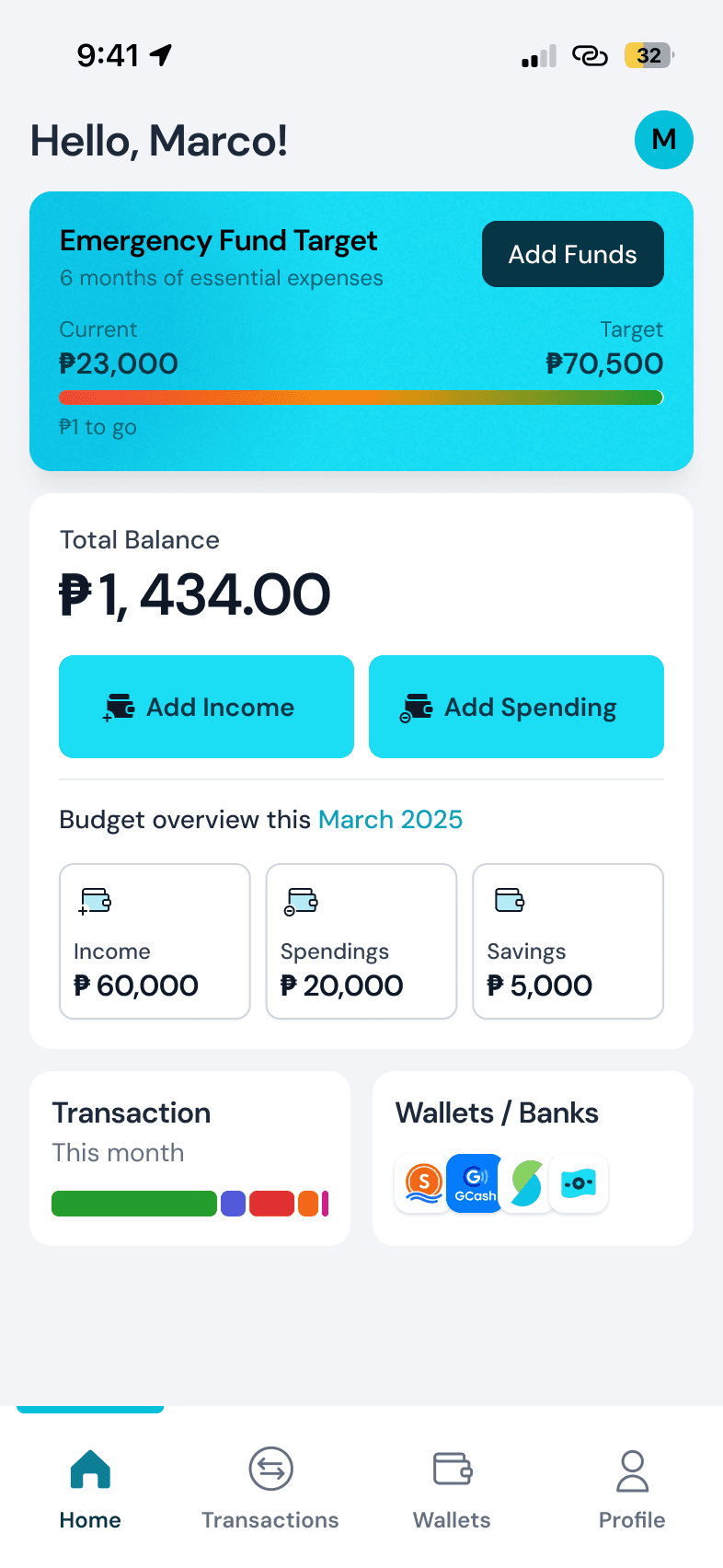 Track your income and gastos with clarity. Build your emergency fund and move closer to your dreams.